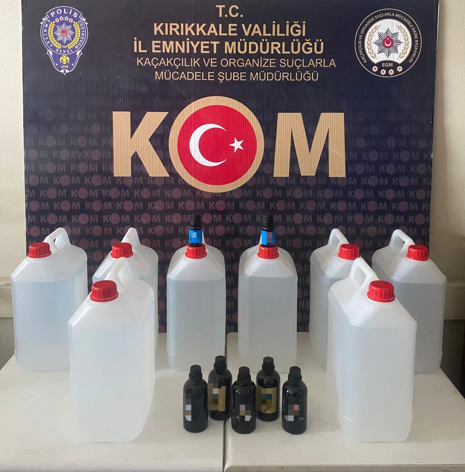 Kırıkkale İl Emniyet Müdürlüğü Kaçakçılık ve Organize Suçlarla Mücadele Şube Müdürlüğü, Cumhuriyet Başsavcılığı koordinesinde gerçekleştirdiği başarılı operasyon sonucu kaçak alkol ve üretim malzemeleri ele geçirdi.