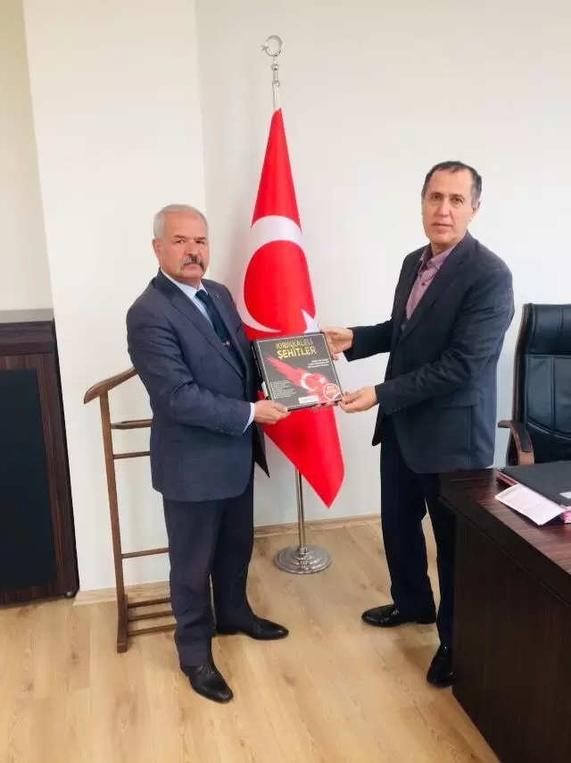 Kırıkkale Vatan için Can Verenler Derneği Başkanı Mümtaz Torunlu ve yönetim kurulu üyeleri Ankara Etimesgut Şehit Sait Ertürk Devlet Hastanesi Başhekimi Op. Dr. Osman Acar’ı ziyaret etti. Başkan Torunlu ve yönetim kurulu üyelerini makamında kabul eden Başhekim Acar, “Şehit ailelerimiz ve gazilerimiz bizim için çok değerli. Devletimiz ve milletimiz şehitlerimizin emanetlerini bugüne kadar olduğu gibi bundan sonra da sahip çıkmaya devam edecek. Ay yıldızlı bayrağın al rengi solmasın diye canlarını feda eden vatan evlatlarımızın ruhları şad olsun. Sizlerin hizmetinizdeyiz, emrinizdeyiz hangi sorununuz olursa olsun bütün kapılarımız sizler için açıktır” ifadesini kullandı. Ziyarette Başhekim Acar’a çalışmalarında başarılar dileyen Başkan Torunlu, ziyaret anısına Kırıkkale Şehitler Kitabı hediye etti.