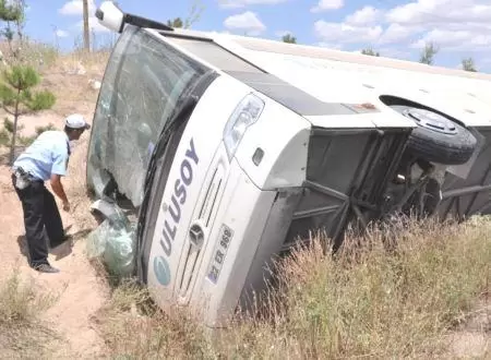 Kırıkkale’de yolcu otobüsünün devrilmesi sonucu 1’i ağır 9 kişi yaralandı. Kaza, Kırıkkale-Samsun karayolunun 30’uncu kilometresinde meydana geldi. Çorum’dan İstanbul’a giden Samet Bakmaz yönetimindeki 22 ER 968 plakalı yolcu otobüsü, sürücünün direksiyon kontrolünü yitirince şarampole yuvarlandı. Kazada yolculardan ağır yaralı Damla Demir ile yedek sürücü Ömer Yavuz, diğer yolcular Gamze Özakşehir, Serdar Aydın, Hüseyin ve Seda, Hatice ve Efe Çuvacı ile Tamer Akkaya çeşitli yerlerinden yaralandı. Yoldan geçen vatandaşların ihbarı üzerine olay yerine çok sayıda ambulans, itfaiye ve polis ekibi sevk edildi.