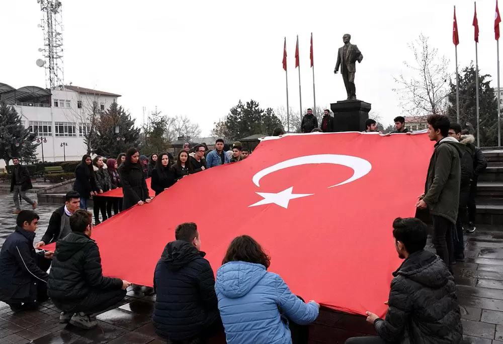 Kırıkkale’de lise öğrencileri, Türk Silahlı Kuvvetlerince (TSK) Suriye’nin Afrin bölgesinde terör unsurlarına karşı başlatılan Zeytin Dalı Harekatı’na destek verdi.