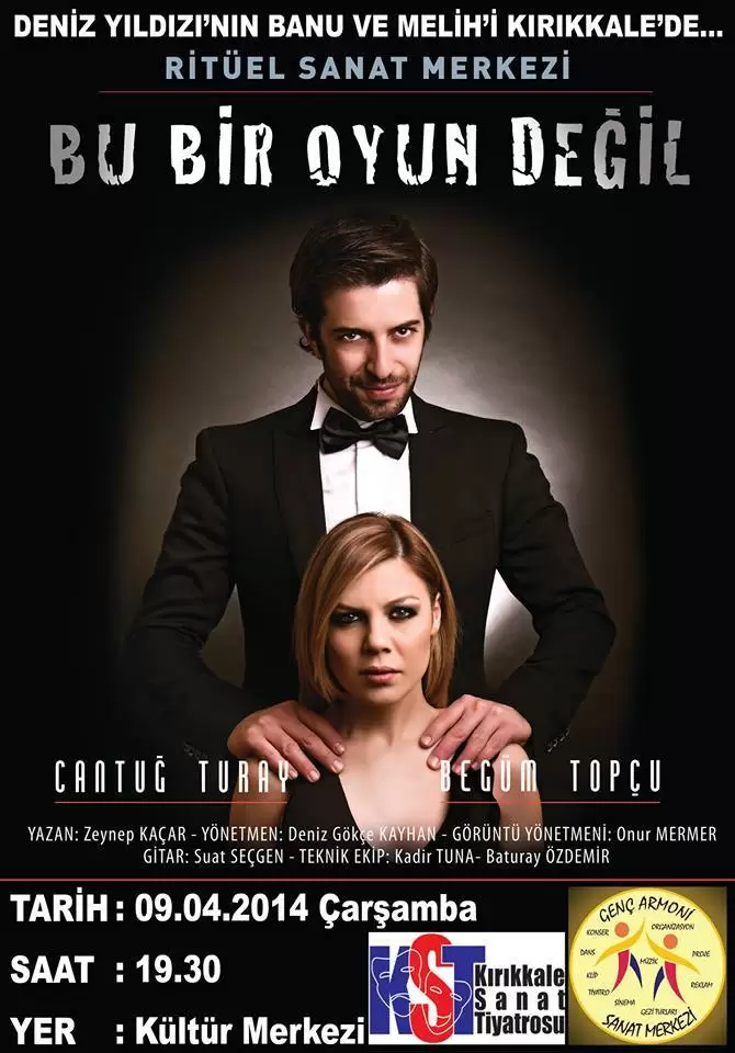 “Bu Bir Oyun Değil” isimli tiyatro oyunu Genç Armoni Sanat Merkezi ve Kırıkkale Sanat Tiyatrosu organizatörlüğünde Kırıkkaleli tiyatroseverlerin karşısına çıkıyor.9 NİSAN’DA KIRIKKALE’DE