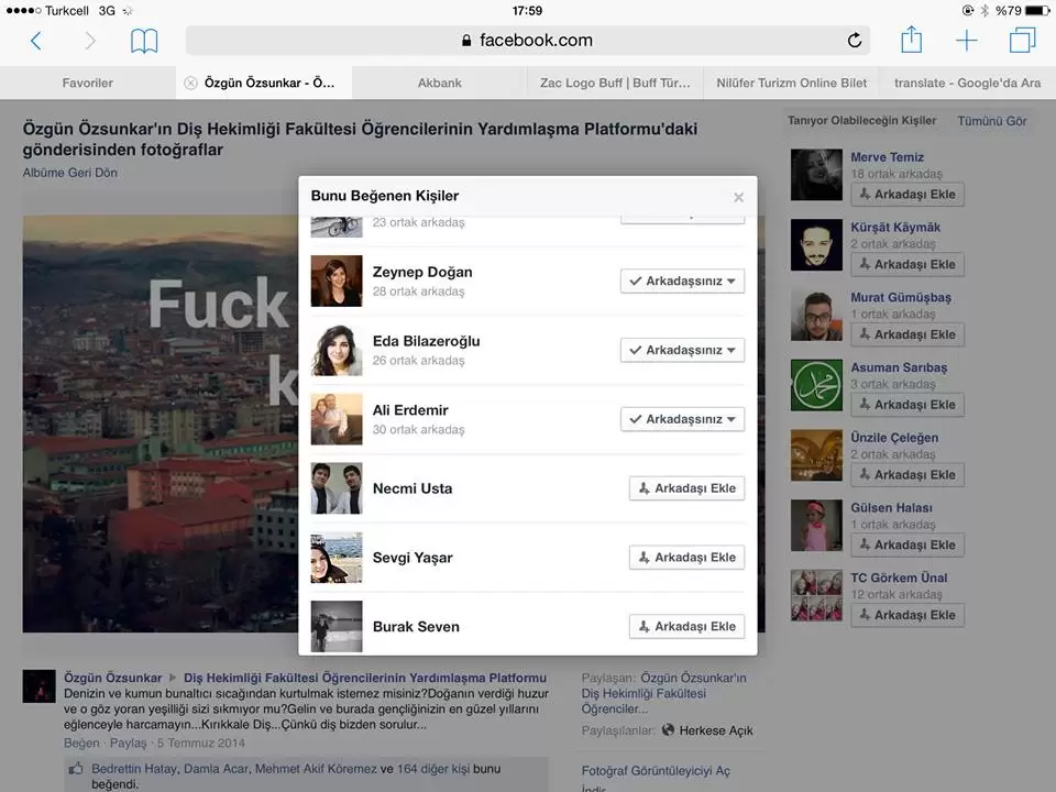 Yorumları silindiği anlaşılan Ecem adlı bir üyenin yorumuna karşılık, “Ecem hanim lutfen lafinizi geri alin, kirikkaleye boktan dedirtmem…tezek belki ama bok asla…o degil de benim samsun tutuyodu zamaninda ya” şeklinde bir ifade kullanması da Özgün Özsunkar adlı öğrencinin haddini ne kadar aştığının göstergesi olarak karşımıza çıkıyor. Bütün bunların yanı sıra Özgün Özsunkar adlı öğrencinin profilinde bahsettiğimiz Kırıkkale’ye hakaret içeren fotoğrafı beğenen şahıslardan birisinin de Kırıkkale Üniversitesi Diş Hekimliği Fakültesi Dekanı Prof. Dr. Ali Erdemir olması ise konuya ayrı bir boyut kattı. Sahte olabileceği ihtimaliyle kendisine ait profili de incelediğimiz Dekan Erdemir’in kendisine ait Facebook hesabı olduğu da haberimize fotoğraflarda görülmektedir. Profesörlük seviyesine ulaşmış ve Diş Hekimliği Fakültesine Dekanı olmuş bir akademisyenin, rızkını kazandığı şehir hakkında bu tür bir fotoğrafı desteklercesine beğenmesi durumuna ne denir, varın siz yorumlayın!..