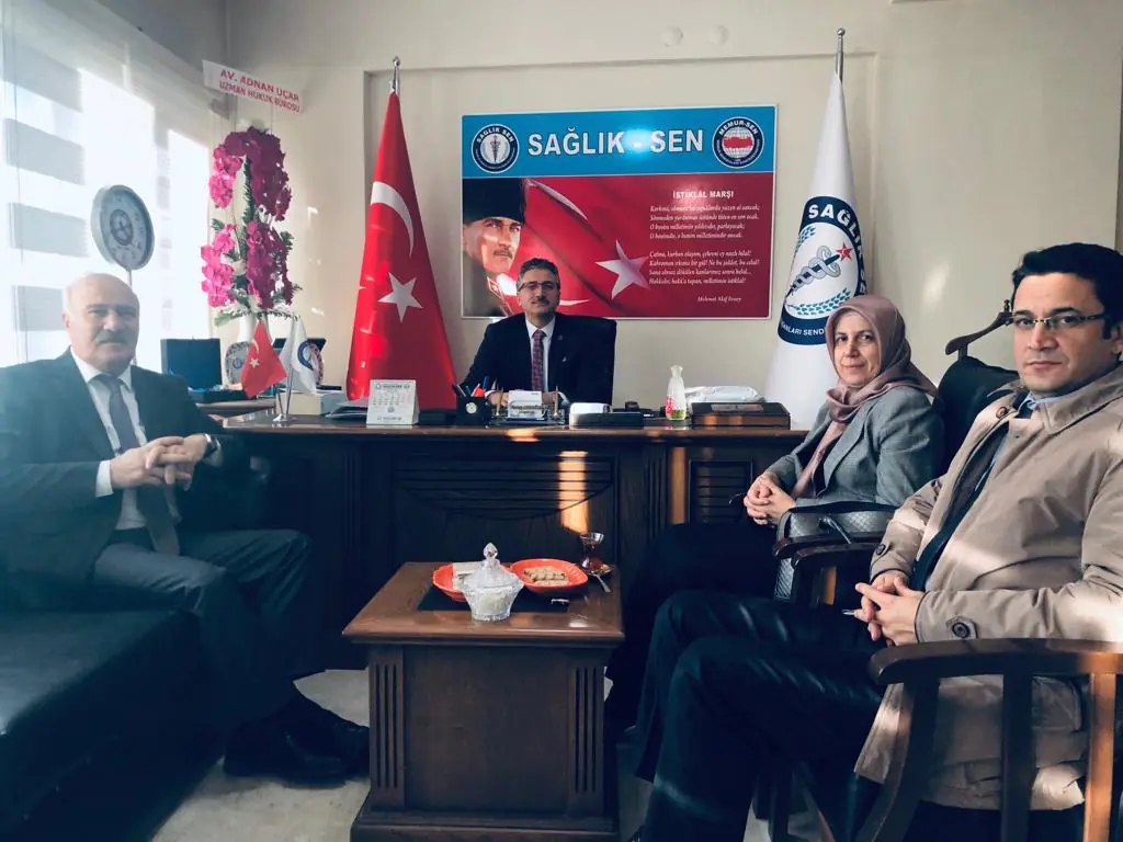 Aile, Çalışma ve Sosyal Hizmetler İl Müdürü Hatice Uğurlu, İl Müdür Yardımcıları Ataman Sümer, Yakup Yeşilırmak Memur-Sen İl Başkanı Recep Akdoğan’a hayırlı olsun ziyaretinde bulundu. Başkan Akdoğan ziyarette İl Müdürlüğünde görev yapan personelin çalışma şartları ve talepleri görüşüldü.