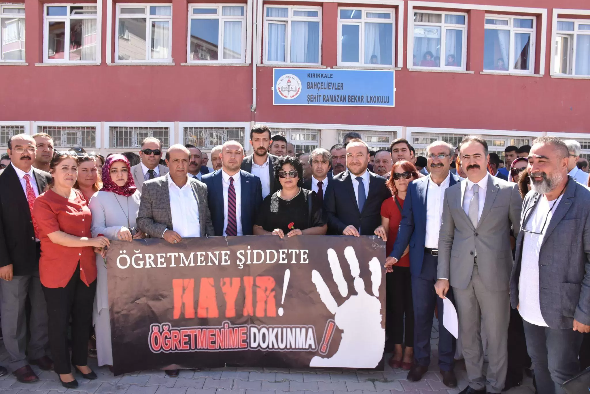 Sendikalar adına basın açıklamasını okuyan Türk Eğitim-Sen Şube Başkanı A. Yücel Karabacak, “Son yıllarda üzülerek şahit oluyoruz ki, öğretmene şiddet vakaları artık sıradanlaşmış üçüncü sayfa haberleri arasına girmiş durumdadır. Neredeyse gün geçmiyor ki, öğrenci ya da veli tarafından sözlü ya da fiziki şiddete maruz kalan bir öğretmen haberiyle karşılaşmayalım. Öğretmenlerimizin motivasyonuna, itibarına, sıhhatine ve hatta canına kast eden şiddet vakaları, artık eğitim hayatımızın en hayati problemlerinden birisi haline gelmiştir. Bu acı vakaların sonuncusu da perşembe günü Kırıkkale’de oldu. Şehit Ramazan Bekar ilkokulu sınıf öğretmeni Gülnihal Cünnük hanımefendi, bazı veliler tarafından görevi başında çirkin bir saldırıya uğramış, acımasızca darp edilmiştir. Gülnihal Cünnük öğretmenimize geçmiş olsun dileklerimizi sunuyor, acil şifalar diliyoruz. Şiddeti nefretle kınıyor, reddediyor, telin ediyoruz. Cezai yaptırımın uygulanması için hukuki ve yasal süreçlerin sendikalarca hassasiyetle takip edileceğinin bilinmesini istiyoruz.”dedi.