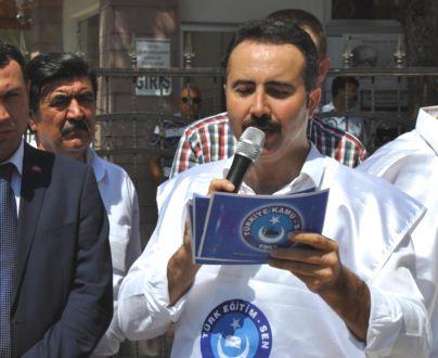 Karabacak konuşmasının devamında, “14 Mart 2014 tarihinde 6528 sayılı Kamuoyunda dershaneler yasası olarak da bilinen MEB Temel Kanunun’da yapılan bir değişiklikle MEB’de siyasi iktidarca sivil bir darbe yapılmıştı. Bu darbe kanunu ile AKP MEB’de kendi devletini kurmak üzere gerekli yasal dayanağı oluşturmuştu. Biz o günler de kamuoyuyla bu konuların ehemmiyetini paylaşmış, kanunla AKP’nin kendi yandaşı olmayanları tasfiye edeceğini defalarca söylemiş, eylemler yapmış, derdimizi, sıkıntımızı ve durumun vahametini anlatmaya çalışmıştık. Hatta o zaman şunu da söylemiştik. Bunlar diktatör yaklaşımla Türk Alfabesinin adı olan ABC’yi AKP yaparlar demiştik. İşte o seviyeye getirdiler. O kadar gözlerini karartmışlar ki bu siyasi zihniyet sonunda eğitimin tecrübeli kadrolarını tasfiye ederek eğitim-öğretime büyük bir darbe vurmuştur. Bunun adı darbedir bunun adı kıyımdır.”