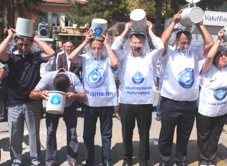 Türk Eğitim Sen Şube Başkanı Yücel Karabacak, MEB temel kanununda yapılan değişikliğin siyasal bir darbe olduğunu söyledi. Bu kanunu protesto etmek için Milli Eğitim Müdürlüğü önünde toplanan Türk Eğitim Sen üyeleri, ALS hastalığına dikkat çekenlere destek vererek buzlu kovayı üzerlerinden döktüler. ALS hastalığının beyni felç ettiğini, AKP’nin ise eğitim sistemini felç ettiğini belirten Karabacak, yapılan siyasi darbenin hesabını soracaklarını bildirdi. Düne kadar üstün başarı belgesi olan okul müdürlerinin sırf yandaş sendikaya üye olmadıkları için AKP tarafından tasfiye edildiğini belirten Karabacak, bunun hukuka aykırı olduğunu ve savcılığa bu konuda suç duyurusunda bulunacaklarını açıkladı.