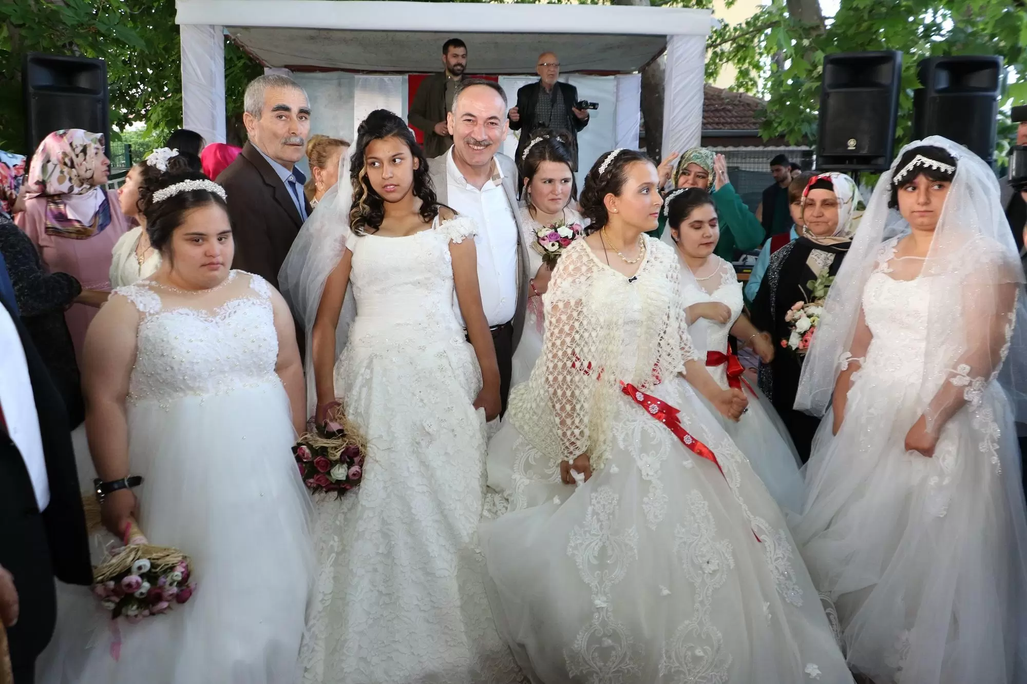 Kırıkkale Belediyesi tarafından düzenlenen etkinlikle kentteki 15 zihinsel engelli kıza gelinlik giydirilerek kına gecesi yapıldı.
