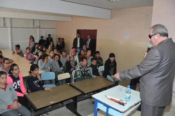 Atatürk Ortaokulunda düzenlenen programda konuşan görme engelli Bekir Akdeniz, hayatındaki engelleri ve yaşadığı zorlukları anlattı. Kendisinin dünyanın en mutlu insanı olduğunu ifade eden Akdeniz, “Hiçbir sıkıntım yok. Çünkü geçici yaşadığımız şu hayatta önemli olan sabredip, yaşamak ve halimizi kabullenmek. Ancak bazen insanlar yardımcı olacakları yerde, ‘gece gündüz dışarıda ne işiniz var’ diyorlar” dedi. Seminerde, öğretmen Başak Duyar da görme engelli birine nasıl yardımcı olunabileceği konusunda bilgi verdi. Hüseyin Onbaşı Camisi müezzini Hüseyin Lüy de yardımlaşmanın öneminden bahsetti. AA