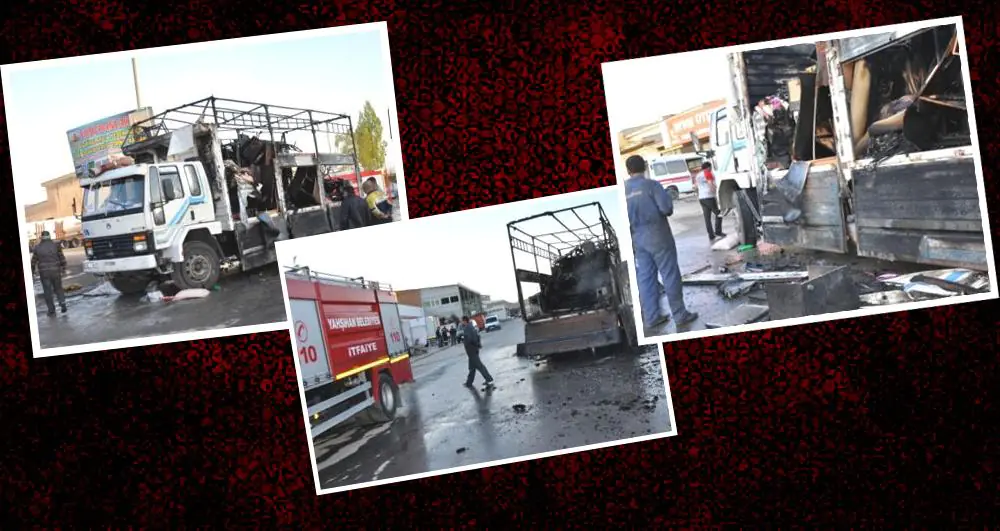 Edinilen bilgilere göre; Hamit Çalışkan idaresindeki ev eşyası yüklü kamyon, Yeni Sanayi Sitesi Alpaslan Sokak’taki bir iş yerine geldi. Burada, kamyonun kasasında bulunan ev eşyalarının üzerine gerilen çadırın uçmasını engellemek için kasadaki demirlere kaynak yapıldığı sırada kaynak makinesinden çıkan kıvılcımların sıçraması üzerine çadır alev aldı.