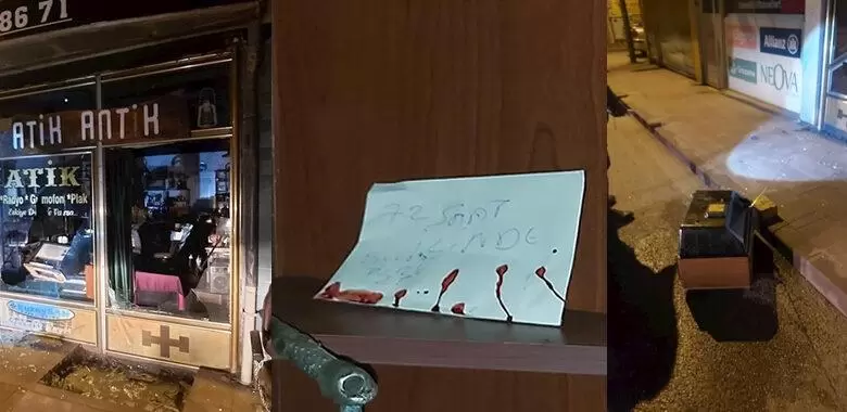 Kırıkkale’de gece sularında Yenidoğan Mahallesi’nde bir antika dükkanına giren kişi yada kişiler iş yerinin altını üstüne getirdiler. BURAYI TERKET İş yerinin camlarını kırarak dükkan malzemelerine zarar veren kişi veya kişiler tarafından iş yerinden çıkmadan önce üzeri kanlı şekilde ”72 saat içerisinde burayı terket” yazılı not bırakıldı. İş yeri sahibi sosyal medya hesabından yaptığı paylaşımda şu ifadelere yer verdi “Bu neyin hırsı, intikamı? Camı, çerçeveyi indir, benzin döküp yakmaya çalış, bir de tehdit mektubu yaz, 72 saat süre ver” açıklamasında bulundu.