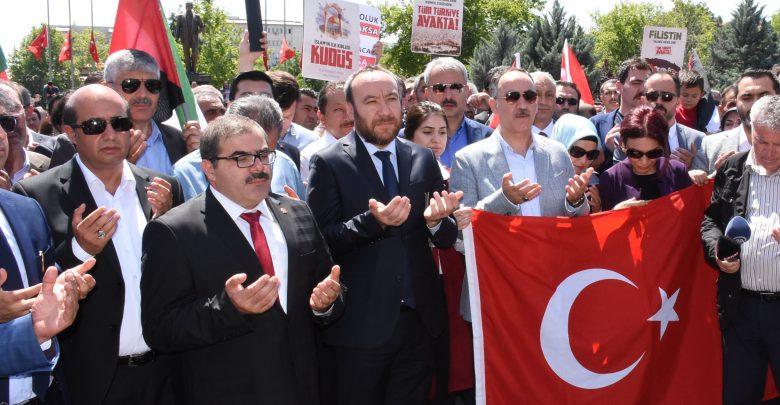 AK Parti Kırıkkale İl Başkanı Nuh Dağdelen’in çağrısı üzerine meydanda toplanan sivil toplum kuruluşları ve vatandaşlar, 60 Filistinlinin şehit edildiği ve 2 bini aşkın Filistinlinin de yaraladığı terör olayları sonrasında İsrail’i protesto ederek lanetler yağdırdı.