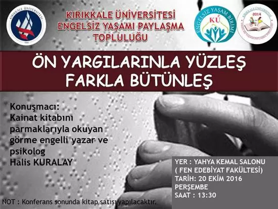 İstanbul Aile ve Sosyal Politikalar İl Müdür Yardımcısı görme engelli Halis Kuralay, Kırıkkale Üniversitesinde düzenlenen “Ön yargılarınla Yüzleş, Farkla Bütünleş” konulu konferansta öğrencilerle buluştu.