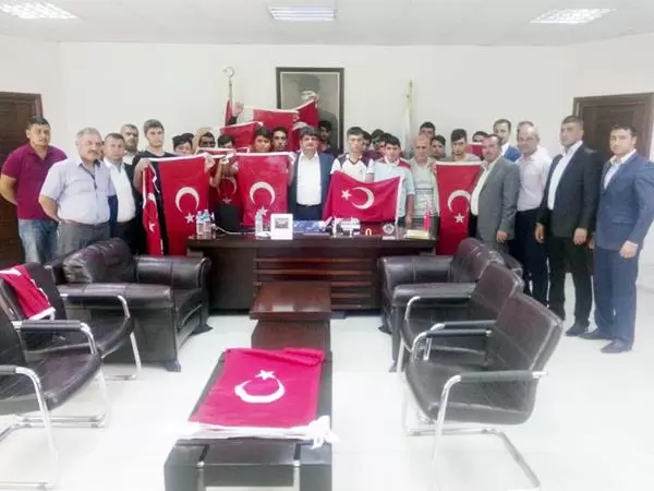 Bahşılı gençler ellerinden Türk Bayrakları ile belediye Başkanı İbrahim Uyar’ı makamında ziyaret ettiler. Gençler terör olaylarının sona ermesi için hükümetin yapacağı her çalışmaya destek ereceklerini söylediler