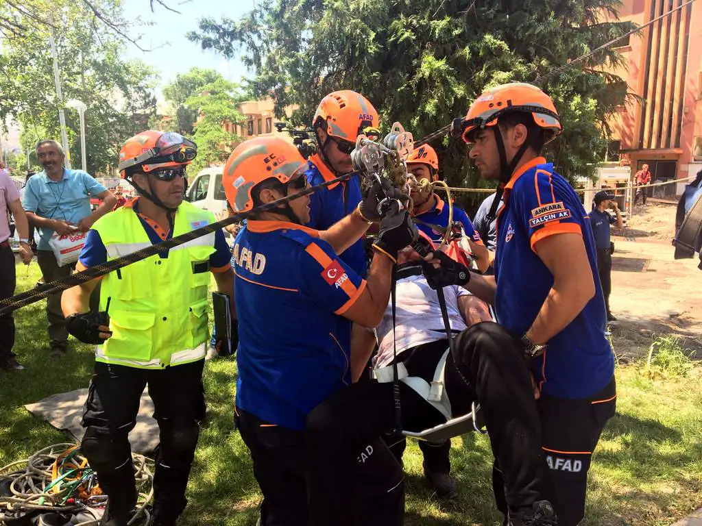 Kırıkkale’de TAMP-Bölgesel Düzey Masabaşı ve Saha Tatbikatı 2019 başarıyla gerçekleştirildi. Tatbikatın ikinci gününde saha tatbikatı gerçekleştirildi. MKEK’ya ait eski lojmanlarda gerçekleşen tatbikatta, senaryo gereği göçük altında bulunan vatandaşlar kurtarılırken, enkaz altından köpekli ve teknik arama-kurtarma ve müdahale çalışmalarını Kırıkkale Valisi Yunus Sezer, Belediye Başkanı Mehmet Saygılı, il müdürleri, bürokratlar ve STK temsilcileri yakından takip etti. AFAD envanterinde bulunan araç ve çadırları inceleyen Vali Sezer, yetkililerden bilgi aldı. Kırıkkale merkezli olarak gerçekleşen tatbikata Eskişehir, Bolu, Çankırı illerinden katılımla seviye 2 olarak, 23 araç 180 personelle 10 ayrı nokta da başarıyla gerçekleştirildi.