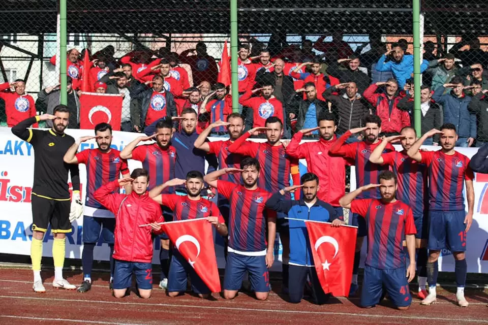 Deplasmanlı Bölgesel Amatör ligde mücadele eden ve Devrek Belediyespor’u 3-0 yenerek liderliğini koruyan Kırıkkale Büyük Anadoluspor’un futbolcuları galibiyet sonrası asker salamı verdi.
