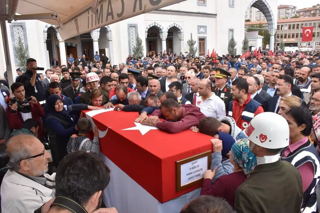 Şehit Sözleşmeli Piyade Er Emre Güngör için Nur Camii avlusunda tören düzenlendi. Hüzün ve gözyaşının hakim olduğu törende aile fertleri şehidin Türk Bayrağına sarılı tabutuna sarılarak gözyaşı döktüler. Törende şehidin yeğeni Batuhan Şengül’ün feryatları ise yürek dağladı. ‘Dayımı almadan bir yere gitmem’ diyerek gözyaşı döken Batuhan’ı Kırıkkale Milletvekili Ramazan Can, eski Başbakan Yardımcısı Beşir Atalay teskin etti. Şehit Emre Güngör, feryatların yankılandığı Nur Camii avlusunda kılınan cenaze namazının ardından askeri törenle son yolculuğuna uğurlandı. Askerlerin omuzlarında top arabasına taşınan şehidin naaşı, daha sonra Keskin Armutlu köyüne götürüldü. Şehit Emre Güngör gözyaşları arasında aile mezarlığında toprağa verildi.