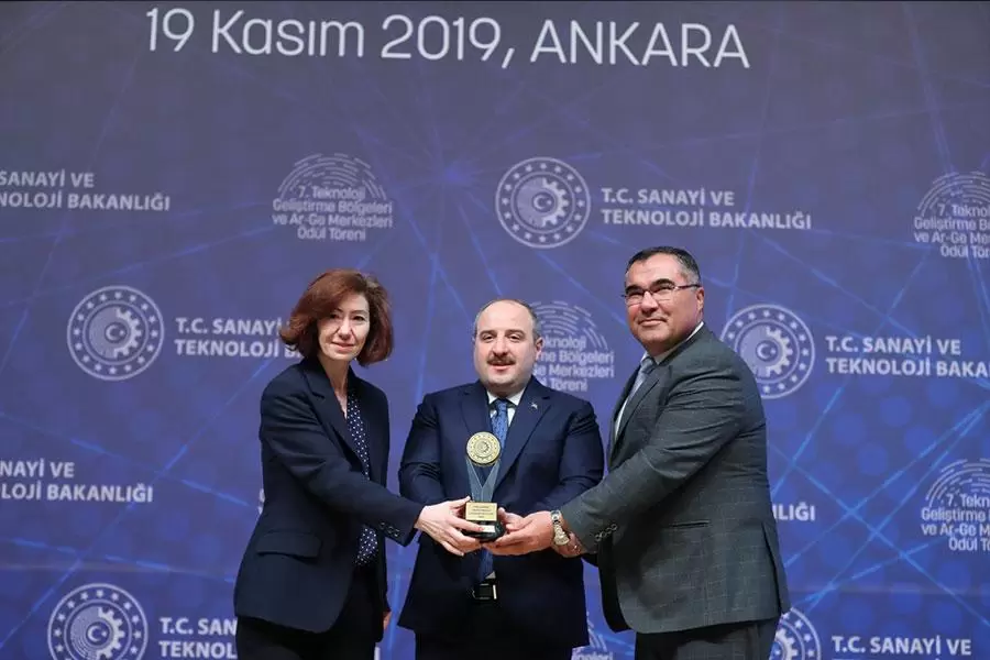 Teknoloji geliştirme bölgeleri ile Ar-Ge ve tasarım merkezlerinde yürütülen projelerin sonunda ortaya konan yeni teknoloji ve çıktıların kamuoyuyla paylaşılması ve başarılı merkezlere ödül verilmesi amacıyla 7’nci Teknoloji Geliştirme Bölgeleri ve Ar-Ge Merkezleri Ödül Töreni yapıldı. Kırıkkale Üniversitesi Teknoloji Geliştirme Bölgesi, Sanayi Bakanlığı tarafından düzenlenen 7. Teknoloji Geliştirme Bölgeleri ve Ar-Ge Merkezleri Ödül Töreni’nde, En İyi Gelişme Gösteren TGB 3.’lük ödülü aldı. Törene Kırıkkale Üniversitesini temsilen katılan Rektör Yardımcısı ve Kırıkkale Üniversitesi Teknoloji Geliştirme Bölgesi Yönetim Kurulu Başkanı Prof. Dr. Mehmet Başalan ile Başkan Vekili Prof. Dr. Saadet Atsü, ödülü, Sanayi ve Teknoloji Bakanı Mustafa Varank’ın elinden aldı.