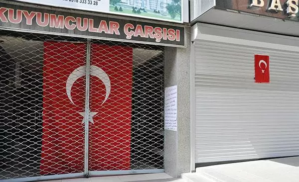 İlimizde bulunan kuyumcu esnafı, Sarraflar ve Kuyumcular Odası Başkanlığı tarafından alınan kararla, terör olaylarına tepki göstermek amacıyla bir günlüğünü kepenk kapatma eylemi gerçekleştirdi. ‘Şehitlerimizin acısını paylaşıyoruz. Kuyumcular olarak bugün kapalıyız. Allah’tan rahmet diliyoruz. Bu fitne ve zulmü reva gören her kimse Allah’ın el kahhar ismiyle onları kahretmesini diliyoruz. Allah’ın laneti üzerlerine olsun. Âmin’ diye dükkânlarına yazı astı.