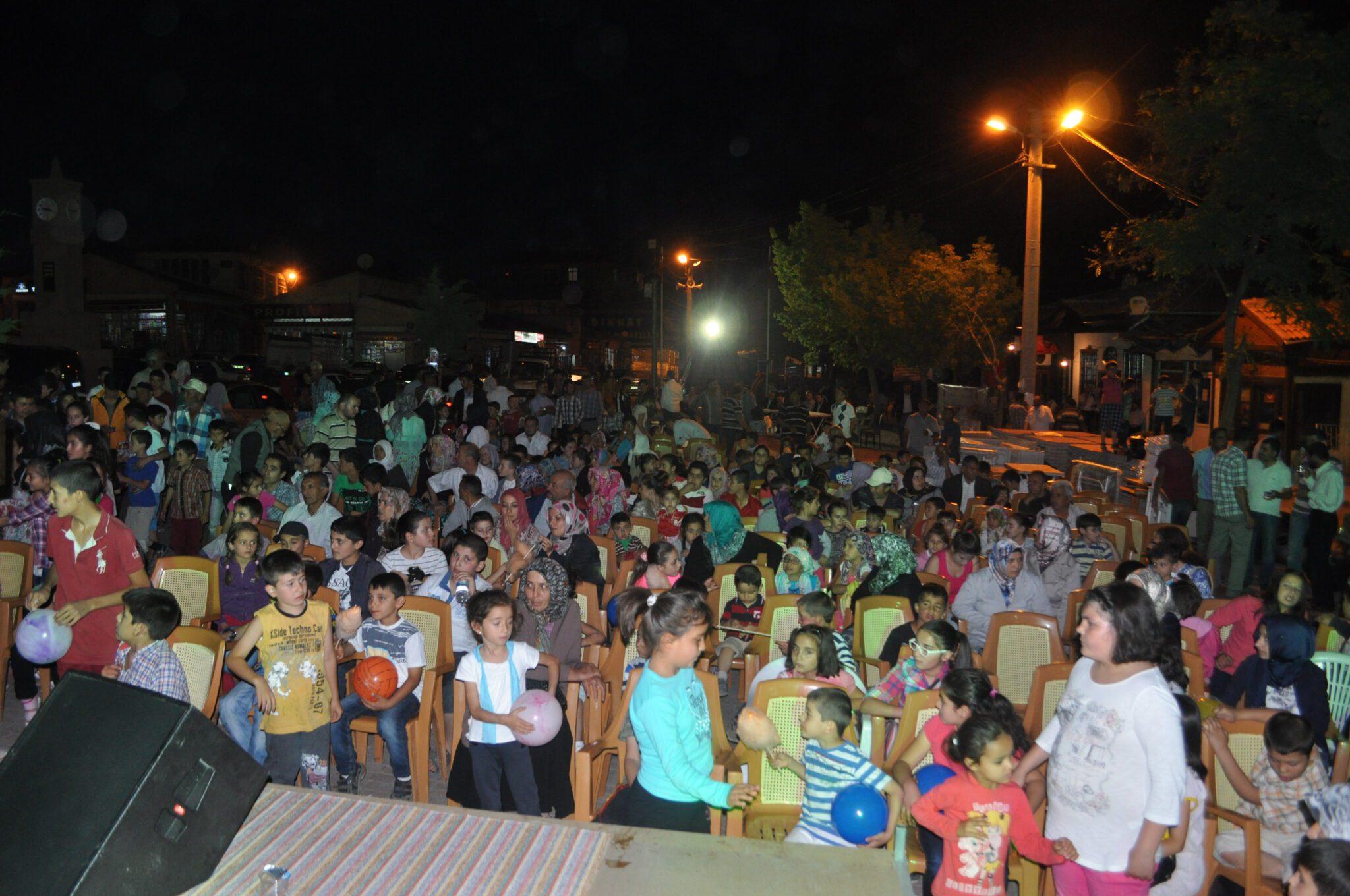 İlçe Meydanı’nı dolduran yüzlerce çocuk oyuncak yarışına girdi. İlk önce minibüsten yapılan dağıtım çocukların izdiham yaratması sonucunda durduruldu. Belediye Başkanı Yıldırım daha sonra meydanda oluşturulan platform üzerinden dağıtım yaptı. Çocuklar sevinci meydanı şenlendirdi.