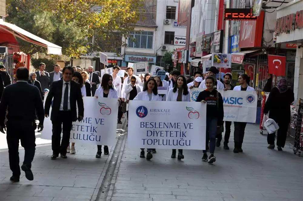 Farkındalık oluşturmak amacıyla İl Sağlık Müdürlüğü ve Kırıkkale Üniversitesi Endokrinoloji Ana Bilim Dalı Başkanlığı tarafından ortaklaşa gerçekleşen etkinlikte Hüseyin Kahya Parkından başlanarak Zafer Caddesinde yürüyüş yapıldı. Hüseyin Kahya Parkında açılan stantta Tıp Fakültesi öğrencileri tarafından vatandaşlara şeker ölçümü yapılırken, diyabetle beslenme konusunda bilgiler verildi. Vali Yardımcısı Mehmet Ercan Aslantaş ve İl Sağlık Müdürü Dr. Murat Ağırtaş öncülüğünde Hüseyin Kahya Parkı’nda toplanan grup, Zafer ve Cumhuriyet caddelerinden geçerek başlangıç noktasına geldi. Ağırtaş, burada yaptığı konuşmada, diyabetin, dünyada ve ülkemizde sıklığı gittikçe artan önemli bir kronik hastalık olduğuna dikkati çekti.
