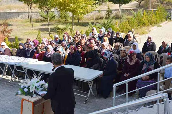 Törene İl Müftüsü Bekir Gerek, Müftü Yardımcısı Mustafa Turan, Din Hizmetleri ve Eğitim Şube Müdürü Demir Keskin, Eğitim Uzmanı Kemal Aslan, Cami İmam-Hatibi Şahin Merdan Aydoğdu, cami dernek görevlileri, Kur’an Kursu Öğreticisi, Öğrencileri ve mahalle sakinleri katıldı. Tören Eğitim Uzmanı Kemal Aslan’ın Kur’an Tilaveti ile başladı. İl Müftüsü Bekir Gerek konuşmasında imandan sonra en önemli ibadetin namaz olduğunu ve namaz kılabilmek için Kur’an’ın belirli bir seviyede okunabilmesi gerektiğini ifade ederek hadımların Kur’an Kurslarına çok ihtiyacı olduğuna değindi. “Sizin en hayırlasınız Kur’an’ı öğrenen ve öğretendir” hadis-i şerifini hatırlatarak hanımların bu hayrı kurslarında kazanabileceklerini ve evlerine de taşımalarını, eşleri ve çocukları da bu hayırlardan istifade etmesi gerektiğini, hayırlı evin içinde Kur’an okunan ev olduğunu söyledi.