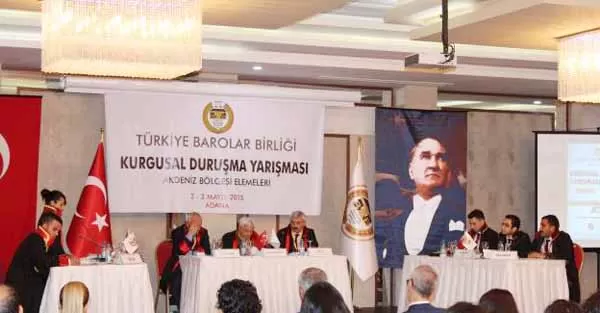 TBB Eğitim Merkezi tarafından düzenlenen ve 47 baronun katılımıyla yedi coğrafi bölgede eş zamanlı olarak gerçekleştirilen elemelerde bölge birinciliğini alan takımlar, aynı “olay metni” üzerinden yaptıkları iddia ve savunma ile bu kez Türkiye derecesine girmek için yarışıyorlar. Yurt genelini kapsaması nedeniyle başkaca bir örneği bulunmayan Stajyer Avukatlar Türkiye Kurgusal Duruşma Yarışması’nın finalinde; -Karadeniz Bölgesi Birincisi Trabzon Barosu, Marmara Bölgesi birincisi İstanbul Barosu, Ege Bölgesi Birincisi Denizli Barosu, Akdeniz Bölgesi Birincisi Antalya Barosu, İç Anadolu Bölgesi Birincisi Aksaray Barosu, Güneydoğu Anadolu Bölgesi Birincisi Diyarbakır Barosu, Doğu Anadolu Bölgesi Birincisi Kars Barosu Stajyer avukatlarının oluşturdukları takımlar yarıştı.