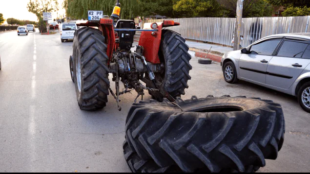 Kırıkkale’de traktörün arkasında zincirle bağladığı tekerlekleri kent merkezinde sürükleyen sürücüye işlem yapıldı.