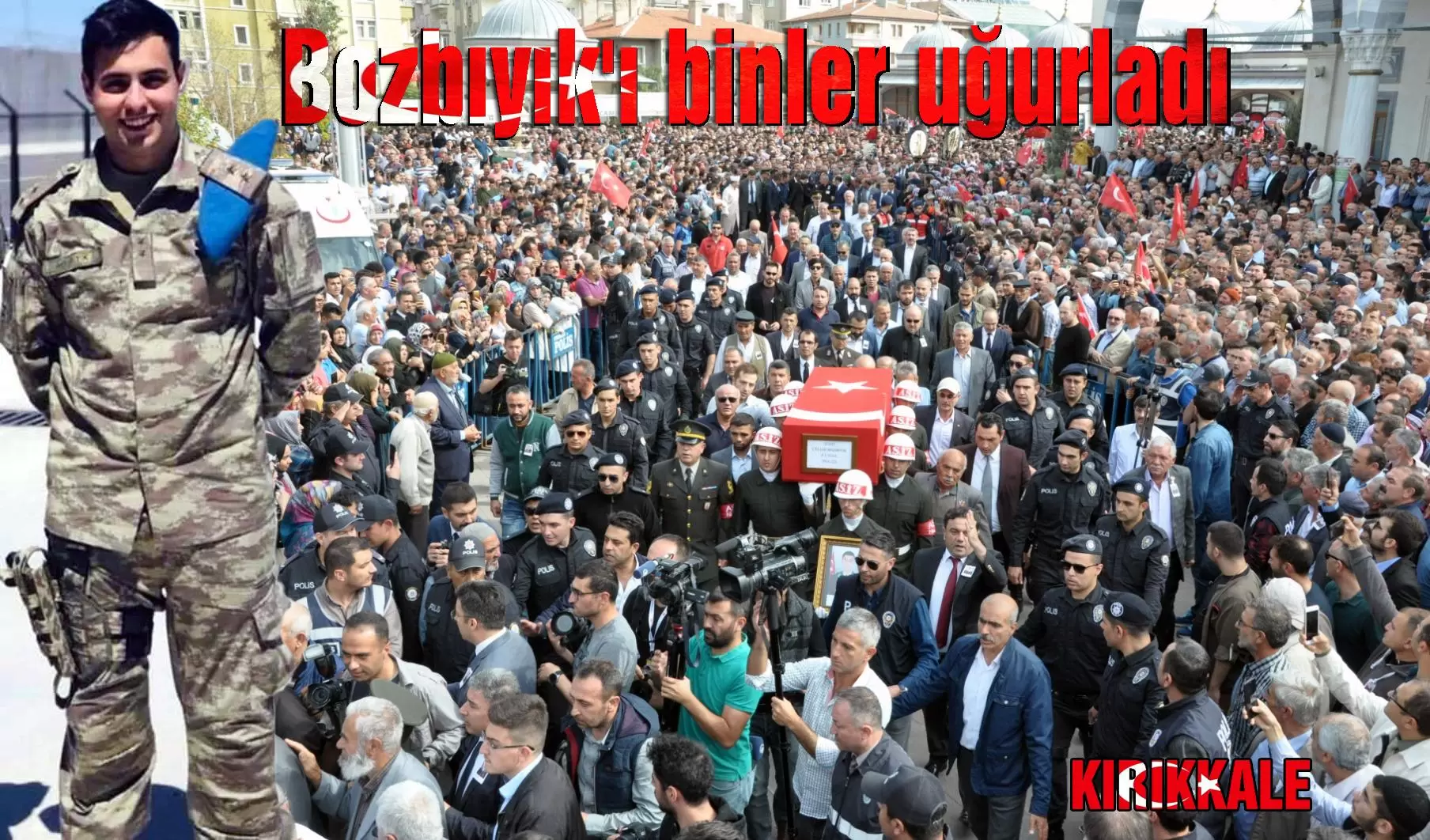 Öğle namazı saatlerinde Nur Camii avlusunu dolduran ve ellerine Türk Bayrakları alan binlerce Kırıkkaleli şehit Bozbıyık’a son görevini yapmak için burada toplandı. Cami avlusunda toplanan askerler ve polisler de yan yana saf tuttu. Birlik ve beraberlik örneği sergileyen asker ve polisler, şehit Bozbıyık için ellerini semaya açarak dualar etti. 2 çocuklarından birini kaybeden baba Hamza ve anne Azime Bozbıyık, gözyaşlarına boğuldu. Törende baba Hamza, anne Azime Bozbıyık, taziyeleri kabul etti. Yakınları, şehit Bozbıyık’ın Türk bayrağına sarılı tabutuna sarılarak gözyaşı döktü. 112 ekipleri ve bayan polisler, Şehit annesi Azime Bozbıyık’ın yanından bir an olsun ayrılmazken, şehit annesini teselli etmeye çalıştı.